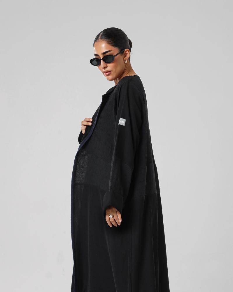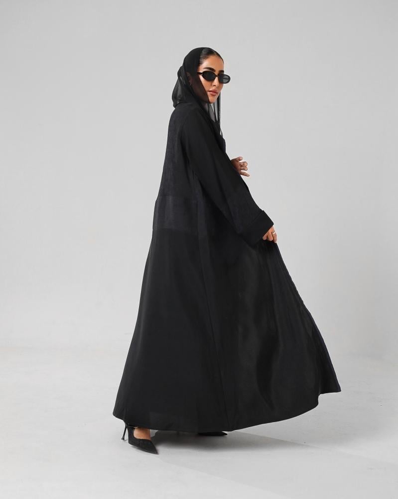 عباية كريب +دانسيل مع تحديد من الأمام كحلي قصة العبايه ساده